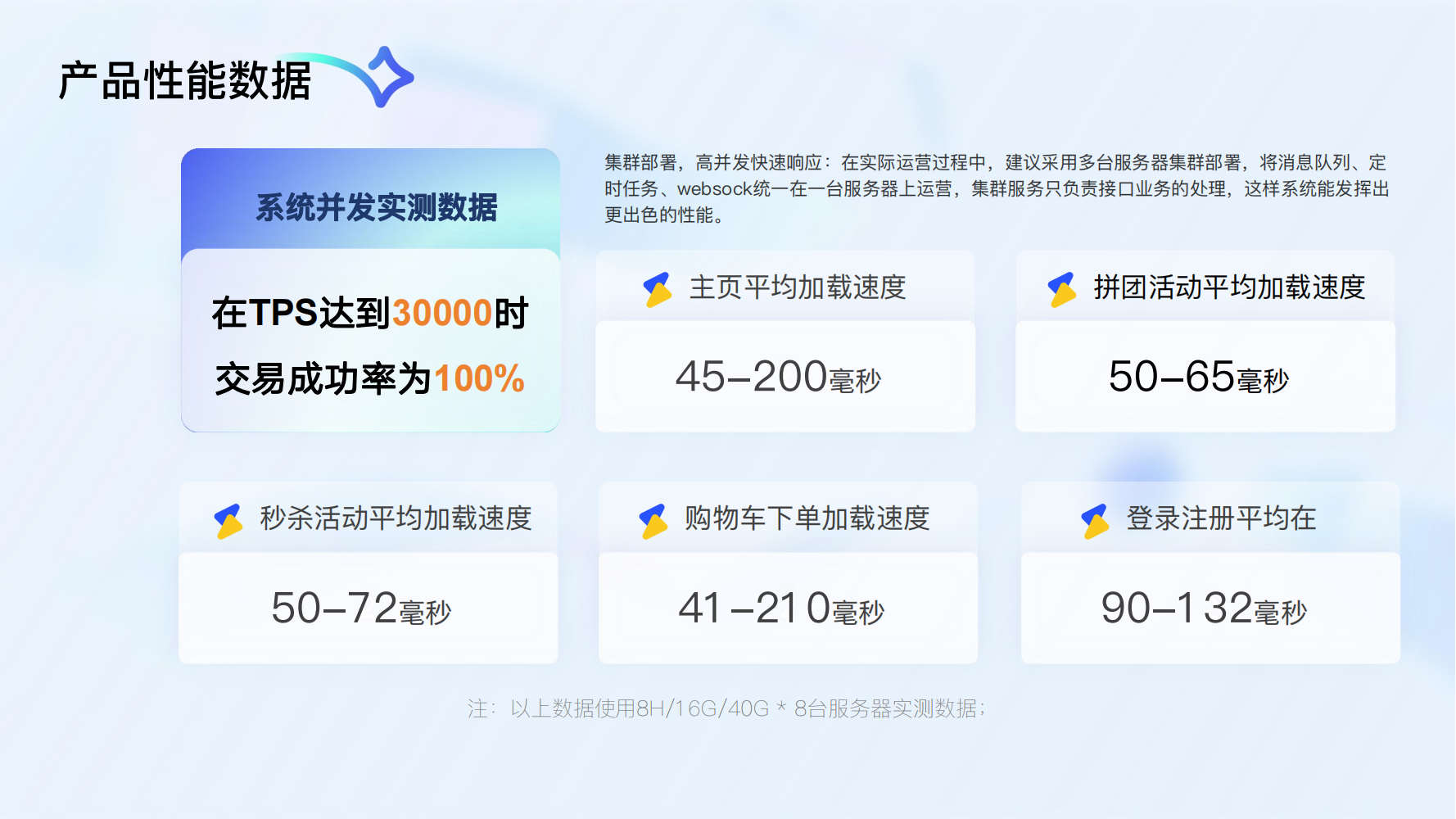 系統(tǒng)采用TP6+Swoole4高性能框架開發(fā),支持數(shù)據(jù)庫獨立部署、服務(wù)器集群;數(shù)據(jù)采用redis緩存、隊列、數(shù)據(jù)庫連接池等技術(shù),提升系統(tǒng)整體性能,為品牌商家長效增長保駕護航;