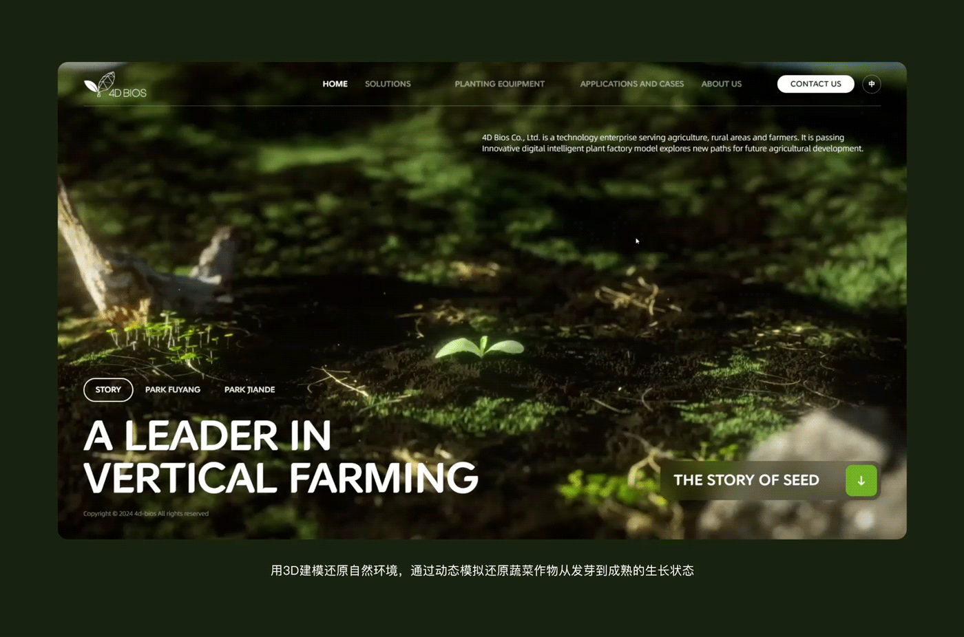 ③ 以動畫的方式讓用戶深刻感知,四維生態(tài)對無添加純天然垂直農(nóng)業(yè)作物的品牌追求;?