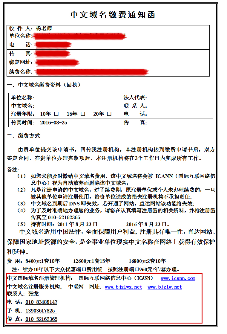 近北京建站公司又通過客戶傳送的word文檔續(xù)費(fèi)通知,揭秘了關(guān)于【中文域名繳費(fèi)通知】的詐騙公司;