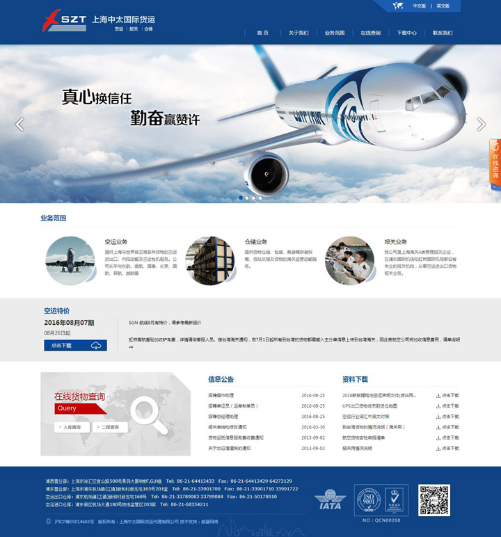 上海國(guó)際貨運(yùn)代理有限公司(三字代碼:SZT)是一家經(jīng)原國(guó)家外經(jīng)貿(mào)部(現(xiàn)國(guó)家商務(wù)部)批準(zhǔn)成立的一級(jí)國(guó)際貨運(yùn)代理企業(yè),并獲得中國(guó)民航總局指定空運(yùn)代理資格,是國(guó)際航空運(yùn)輸協(xié)會(huì)(IATA)的成員,上海貨代協(xié)會(huì)和報(bào)關(guān)協(xié)會(huì)的成員。始終堅(jiān)持以高水平的服務(wù)標(biāo)準(zhǔn)建立完善的操作平臺(tái),以ISO9002質(zhì)量管理標(biāo)準(zhǔn)規(guī)范和完善各項(xiàng)管理及服務(wù)體系,使我們的服務(wù)讓客戶更加放心。