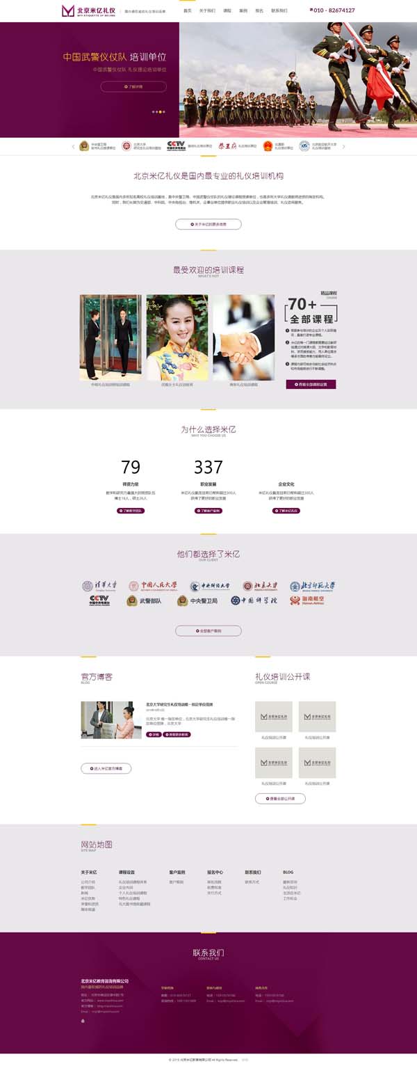 北京禮儀培訓(xùn)中心是國內(nèi)專業(yè)的禮儀培訓(xùn)公司,是國內(nèi)多所知名高校的禮儀培訓(xùn)基地,是中國武警儀仗隊、釣魚臺儀仗隊、國旗護衛(wèi)隊的禮儀理論課程授課單位。北京米億定期在清華、北大等重點高校開展禮儀知識講座。