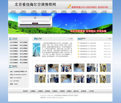 熱烈祝賀 空調維修網站上線,制作周期 5天 贈送 200M虛擬主機