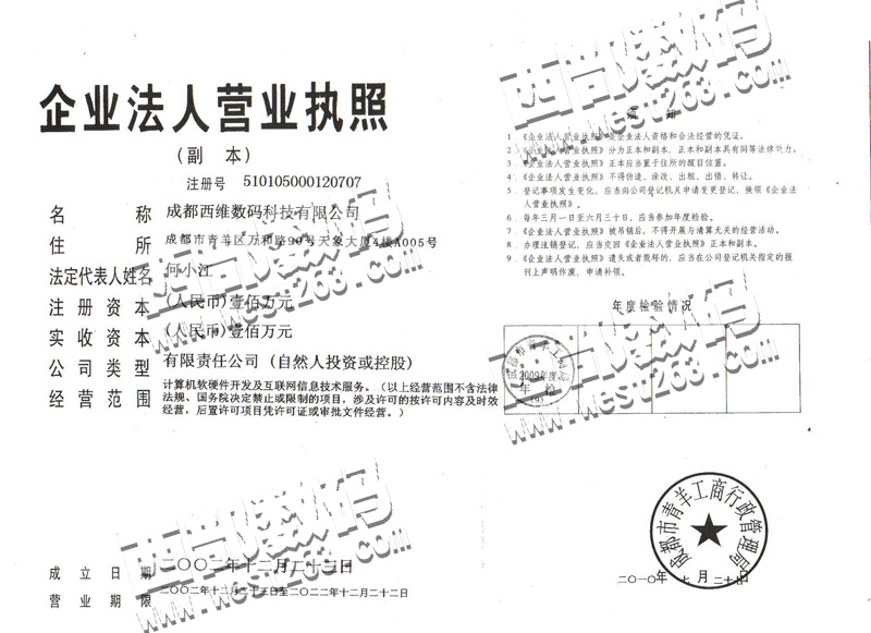 西部數(shù)碼營業(yè)執(zhí)照: