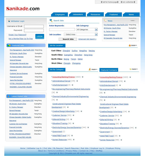 整體色調(diào)為天藍(lán)色 清爽,和白色相搭配 突出內(nèi)容,頁(yè)面布局緊湊 背景融合 適合做國(guó)外招聘類網(wǎng)站