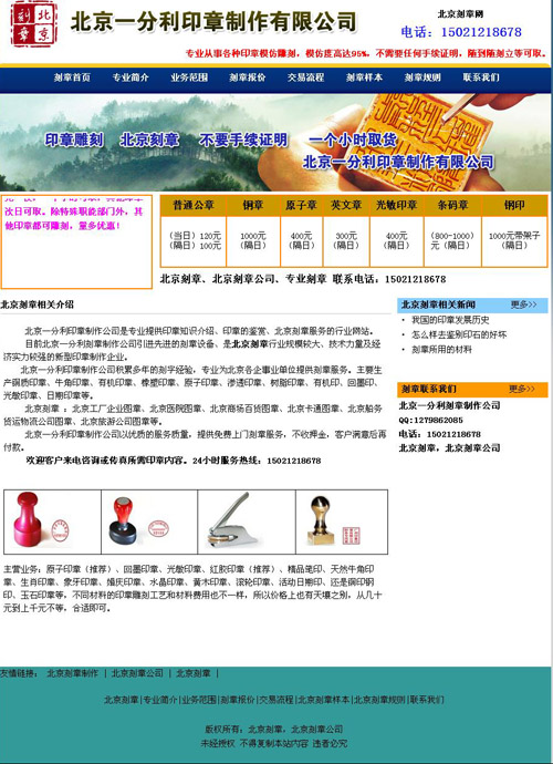 此案例為 網(wǎng)站建設(shè)+網(wǎng)站優(yōu)化 關(guān)鍵詞為(北京刻章)+域名空間 一條龍服務(wù)