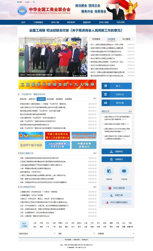 中華全國(guó)工商業(yè)聯(lián)合會(huì)成立于1953年,簡(jiǎn)稱(chēng)全國(guó)工商聯(lián),又稱(chēng)中國(guó)民間商會(huì)。 工商聯(lián)是中國(guó)共產(chǎn)黨領(lǐng)導(dǎo)的以非公有制企業(yè)和非公有制經(jīng)濟(jì)人士為主體,具有統(tǒng)戰(zhàn)性、經(jīng)濟(jì)性、民間性有機(jī)統(tǒng)一特征的人民團(tuán)體和商會(huì)組織,是黨和政府聯(lián)系非公有制經(jīng)濟(jì)人士的橋梁紐帶,是政府管理和服務(wù)非公有制經(jīng)濟(jì)的助手,是中國(guó)人民政治協(xié)商會(huì)議的重要組成部分。