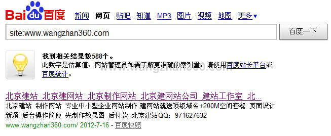 想想百度從6月22日封站開(kāi)始到現(xiàn)在7月16日,已經(jīng)將近一個(gè)月的時(shí)間了,百度已經(jīng)把我們的站,關(guān)鍵詞(北京建站)網(wǎng)址m.rf-sy.com 雪藏了一個(gè)月了, 所有關(guān)鍵詞都沒(méi)有排名了,每天刷新沒(méi)有變化的時(shí)候其實(shí)我的心里還是很失落的,不過(guò)今天我徹底高興了,說(shuō)明百度對(duì)我們的站還是有印象的, 所以一定要堅(jiān)持原創(chuàng),做SEO要有一個(gè)原則:優(yōu)化網(wǎng)站為目的,服務(wù)為原則的態(tài)度!
